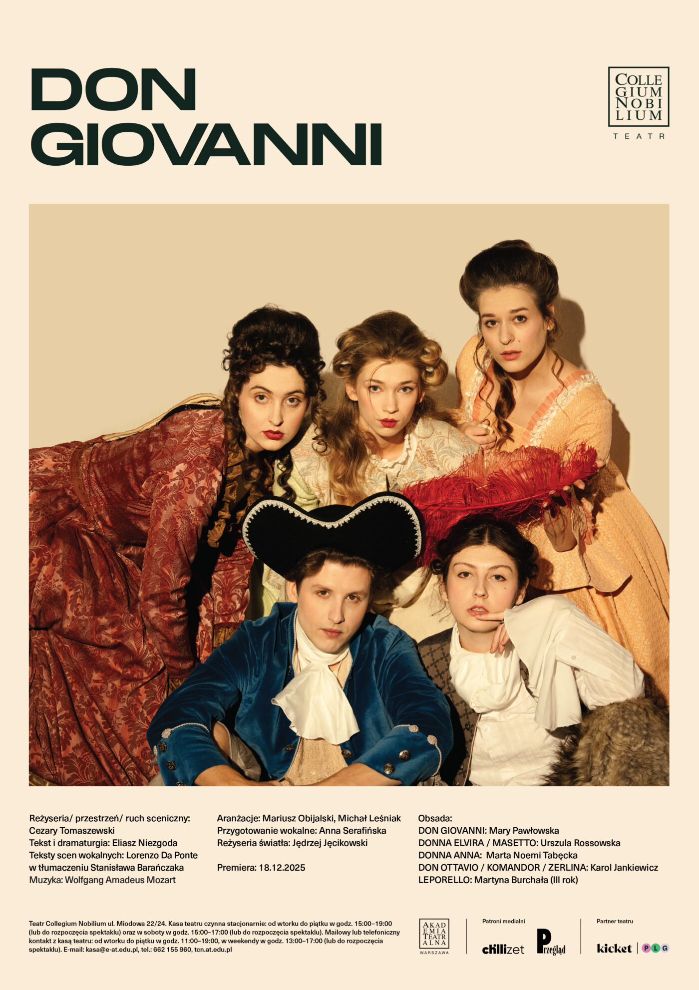 O czym jest Don Giovanni wie mniej więcej każdy, ale co może on znaczyć dla nas dziś? Spektakl wgryza się w operę Mozarta, badając różne rodzaje pożądania oraz oczekiwania, które kierują naszymi relacjami. Problemy sprzed 200 lat odnajdują nowe życie w kontekście współczesnego postrzegania miłości — tej samolubnej, kompulsywnej, niesprawiedliwej i kompletnie nielogicznej.