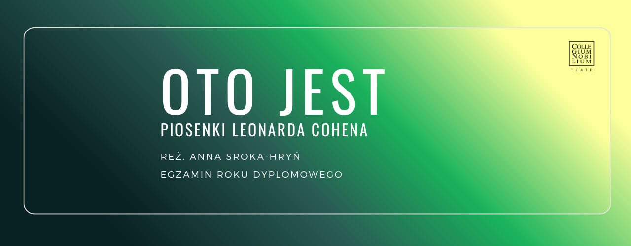 Piosenki Leonarda Cohena„Oto jest” to spektakl muzyczny, który powstał w ramach zajęć dydaktycznych w Akademii Teatralnej im. Aleksandra Zelwerowicza w Warszawie. To fuzja jam session, spektaklu muzycznego i koncertu, w której wszyscy aktorzy są jednocześnie członkami zespołu muzycznego.